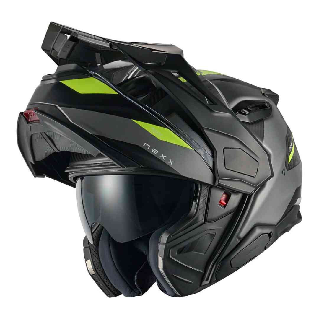 Notranjost iz X-MART Dry materiala učinkovito odvaja vlago in zagotavlja udobje v vseh vremenskih razmerah. Podloga je snemljiva in pralna. Prezračevalni sistem z 2 vhodnima in 2 izhodnima odprtinama omogoča učinkovito kroženje zraka. Integriran sončni vizir, široko vidno polje in priprava za interkom Nexx X.COM3 ter X.COM3 PRO dodatno povečujejo uporabnost čelade.