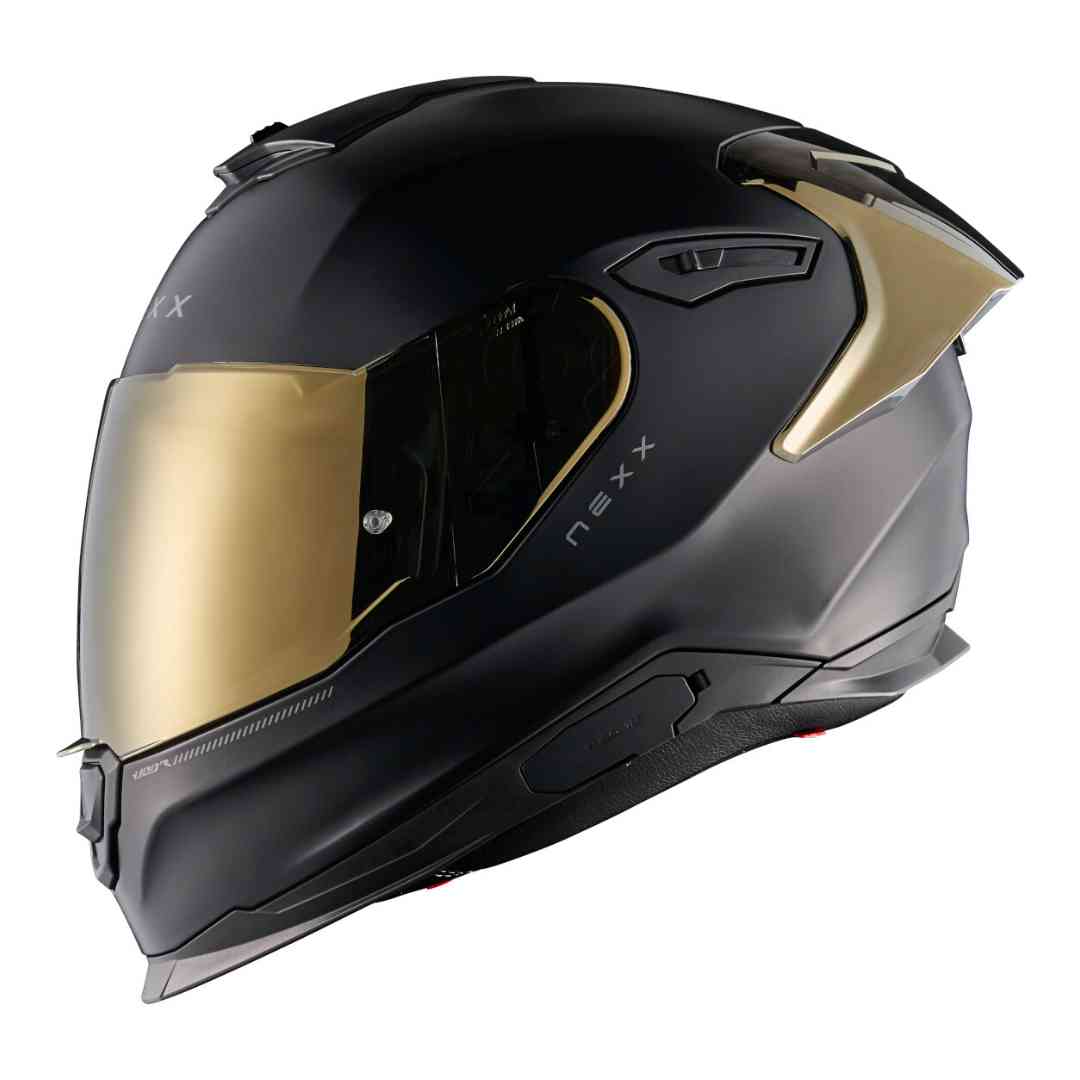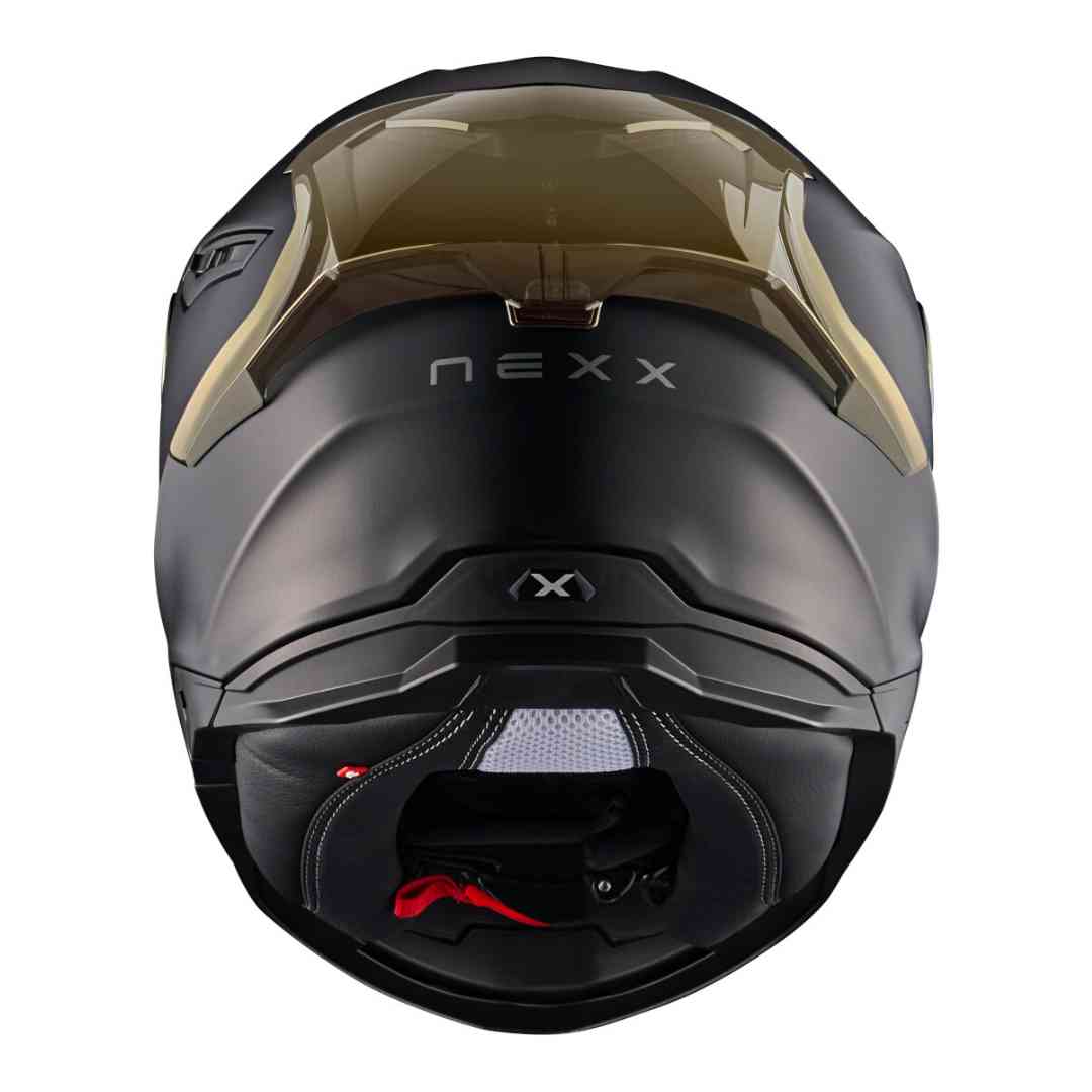 Notranjost iz X-MART Dry materiala učinkovito odvaja vlago in zagotavlja udobje. Anti-noise lični blazinici zmanjšujejo hrup vetra. Prezračevalni sistem z 2 vhodnima in 2 izhodnima odprtinama omogoča učinkovito kroženje zraka. Čelada ima integriran sončni vizir in pripravo za komunikacijski sistem Nexx X.COM3 ter X.COM3 PRO.