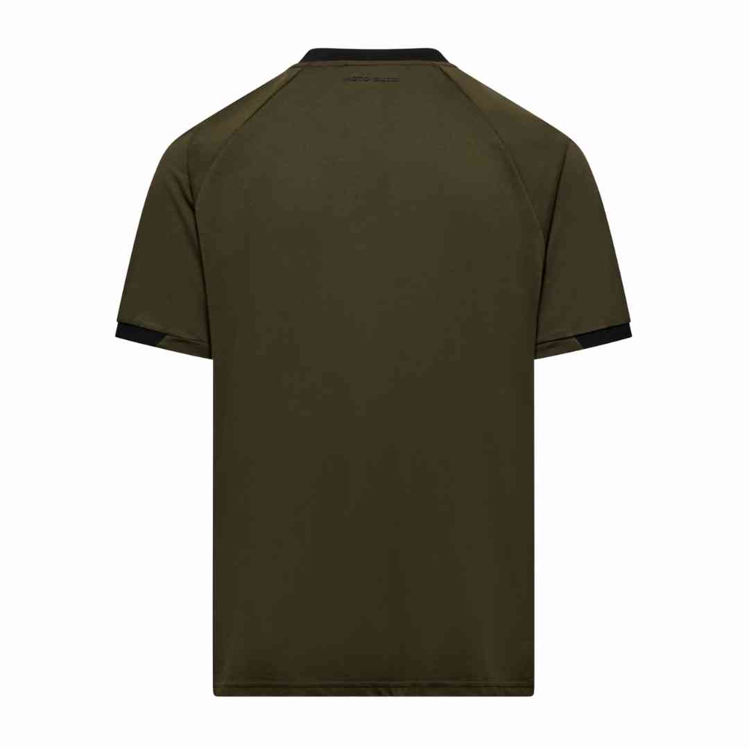 Moto Guzzi Essential majica združuje klasičen videz in sodobne športne elemente, značilne za znamko Moto Guzzi. Izdelana je iz mehkega 100 % bombaža, ki zagotavlja udobje in zračnost pri vsakodnevni uporabi. Klasičen kroj s kratkimi rokavi in okroglim ovratnikom je dopolnjen z raglan rokavi, ki dodajo športno noto. Ojačitveni trak na notranji strani ovratnika poskrbi za optimalno udobje in vzdržljivost. Gumiran potisk MOTO GUZZI spredaj in zadaj daje majici prepoznaven značaj, kontrastni zaključki na rokavih in ovratniku iz dvojne tkanine pa dodajo sodoben, moderen element. Rezultat je udobna in stilsko dovršena majica, primerna za prosti čas in navijaško garderobo.
