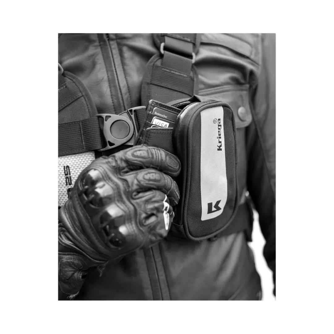 Kriega Harness Pocket torbica omogoča hiter dostop do manjših predmetov med vožnjo. Idealna za shranjevanje telefona, sončnih očal, ključev ali majhne kamere. Enostavno jo pritrdite na pas, naramnico nahrbtnika ali torbo s pomočjo zapiranja na ježka (hook & loop sistem).