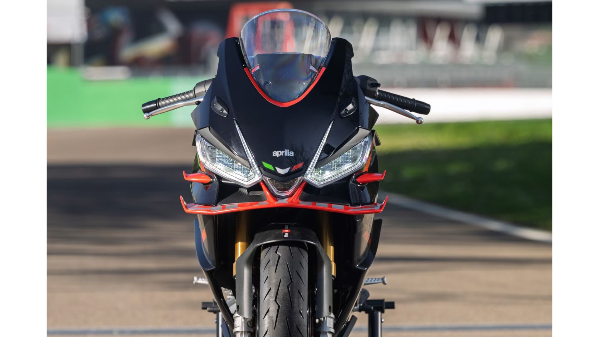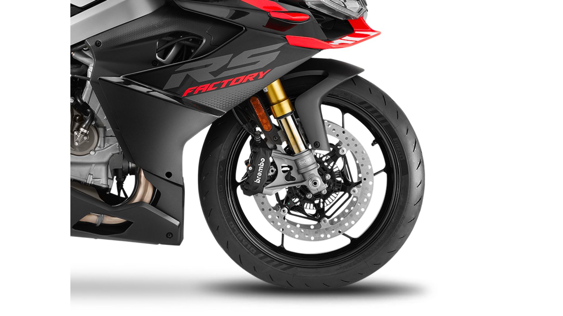 Aprilia RS 660 Factory je utelešenje tekmovalnega duha, kjer se brezkompromisna zmogljivost združuje z vrhunskim dizajnom in napredno tehnologijo. Njena dirkaška identiteta je takoj prepoznavna po kontrastni dvobarvni sedežni prevleki in značilni Factory grafiki, ki poudarjajo ekskluzivnost tega modela. Na cesti prevladuje črna barva, ki motociklu daje agresiven in eleganten videz, medtem ko se ob večjih nagibih razkrije rdeča barva, ki poudari zgornji pogled in jasno izpostavi vtisnjen Aprilia logotip na velikem sprednjem krilcu.
