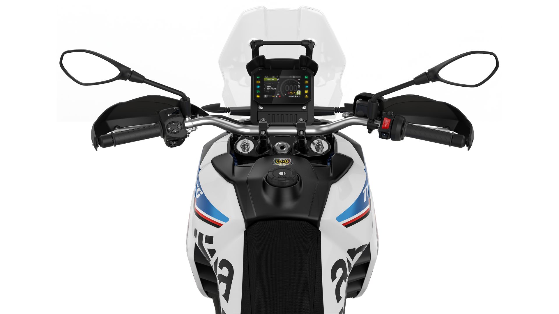 Elektronski paket APRC prinaša štiri vozne načine (Urban, Explore, Off-Road, Individual), prilagodljive motorne mape AEM ter nastavljiva sistema AEB in ATC, ki sta kalibrirana tako za asfalt kot za zahtevno podlago. Dvojni kanal ABS ponuja tri stopnje vmešavanja in funkcijo Rear Wheel Lift-up Mitigation, medtem ko tempomat ACC poskrbi za sproščeno križarjenje. Vse ključne informacije so prikazane na 5-palčnem TFT-zaslonu, ki samodejno prilagaja svetilnost zunanji svetlobi, dodatek Aprilia MIA pa razširi funkcije z navigacijo, klici in glasbo.